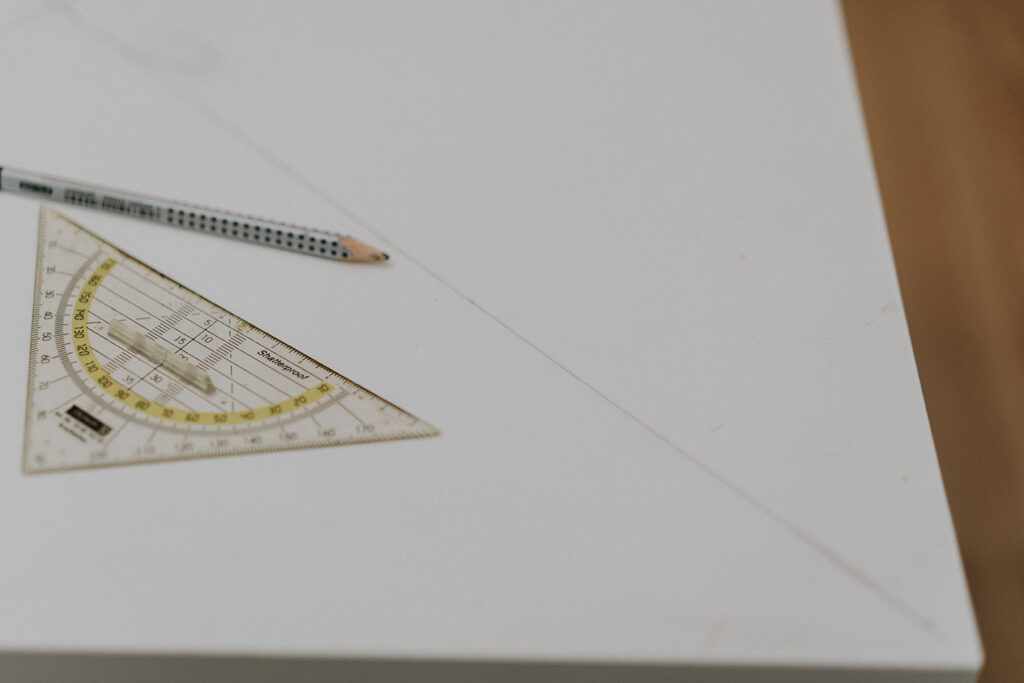 Um später eine gerade und gleiche Ausrichtung der Hölzer zu haben, startet ihr in der Tischmitte. Dazu habe ich mit Bleistift zwei Diagonalen gezogen. An der Stelle, an der die Linien aufeinandertreffen findet ihr die Mitte.