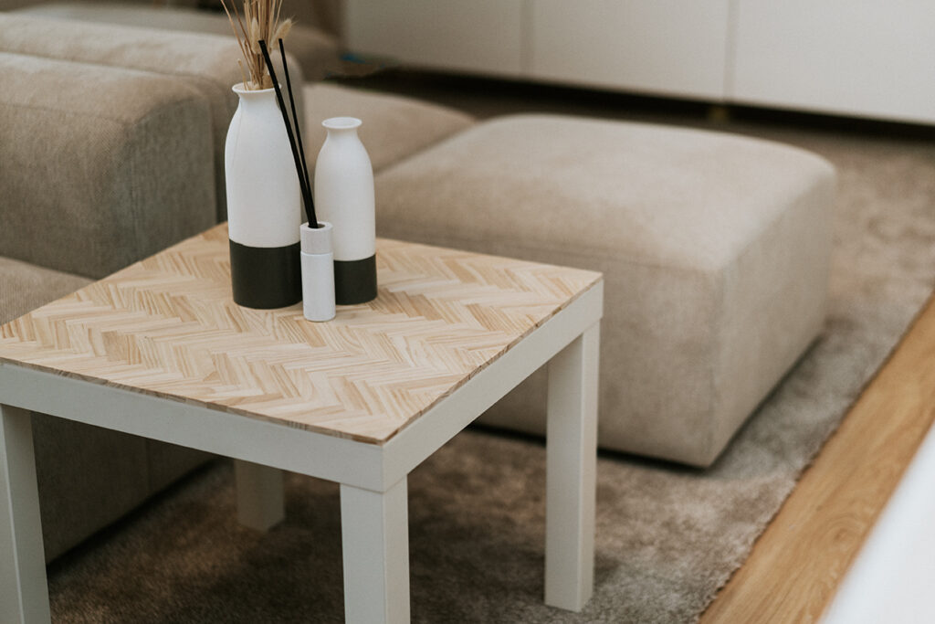 Beistelltisch mit Fischgrätenmuster – DIY Ikea Lack Hack für unter 50 Euro