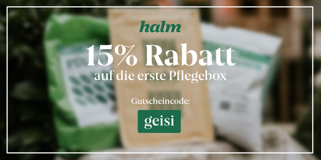 Für alle, die auch jetzt schon gerne loslegen wolllen: Mit dem Code „geisi“ erhaltet ihr 15% Rabatt auf eure erste Pflegebox auf der halm.club Website.